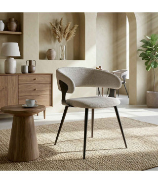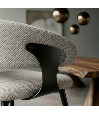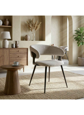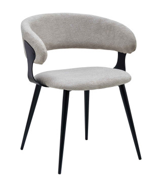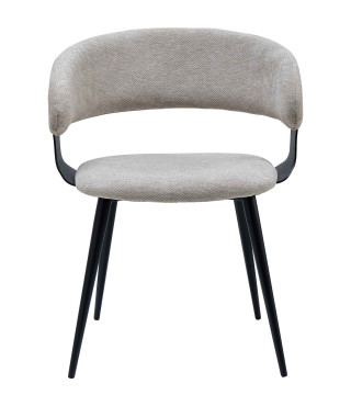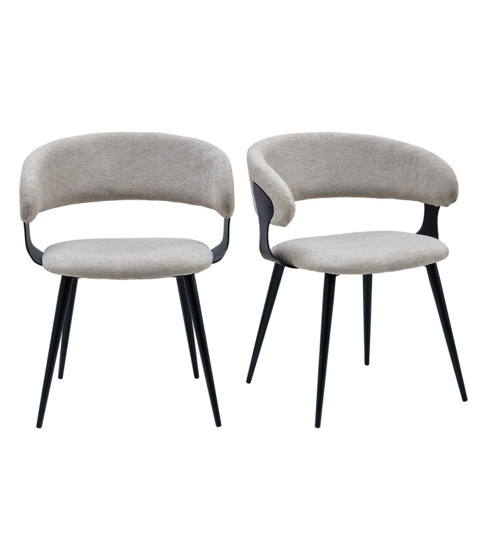 NINA, Fauteuil de table en tissu Luxury Grège et métal noir (x2)