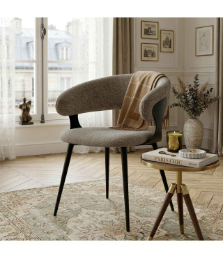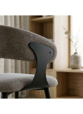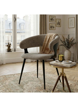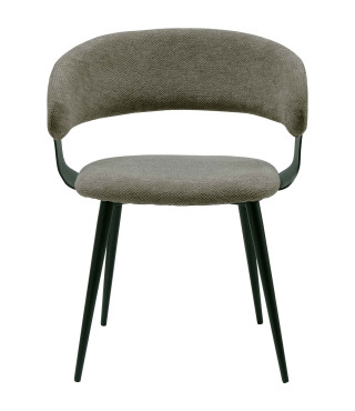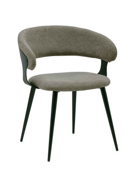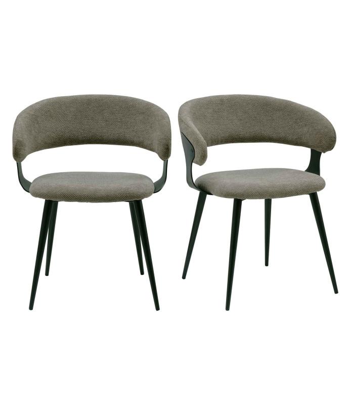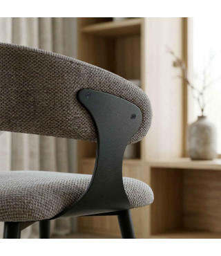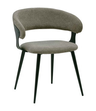 NINA, Fauteuil de table en tissu Luxury Taupe et métal noir (x2)