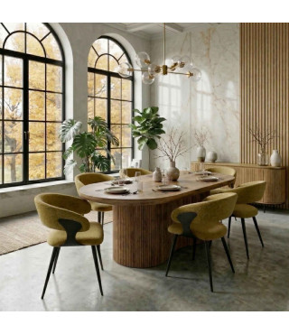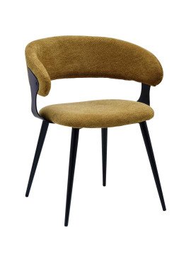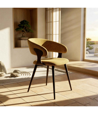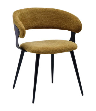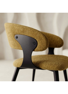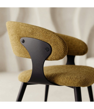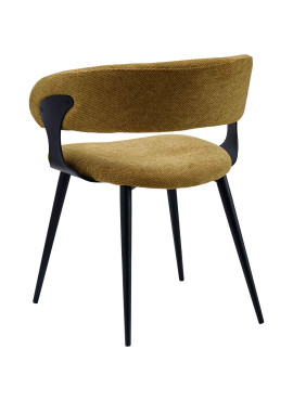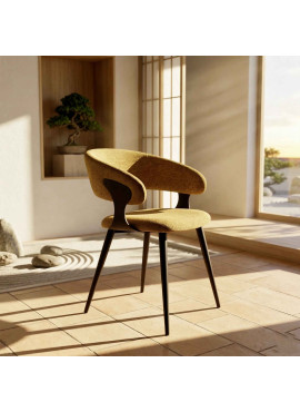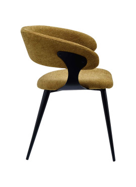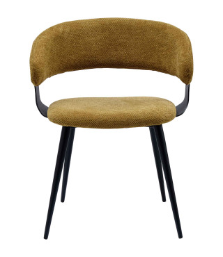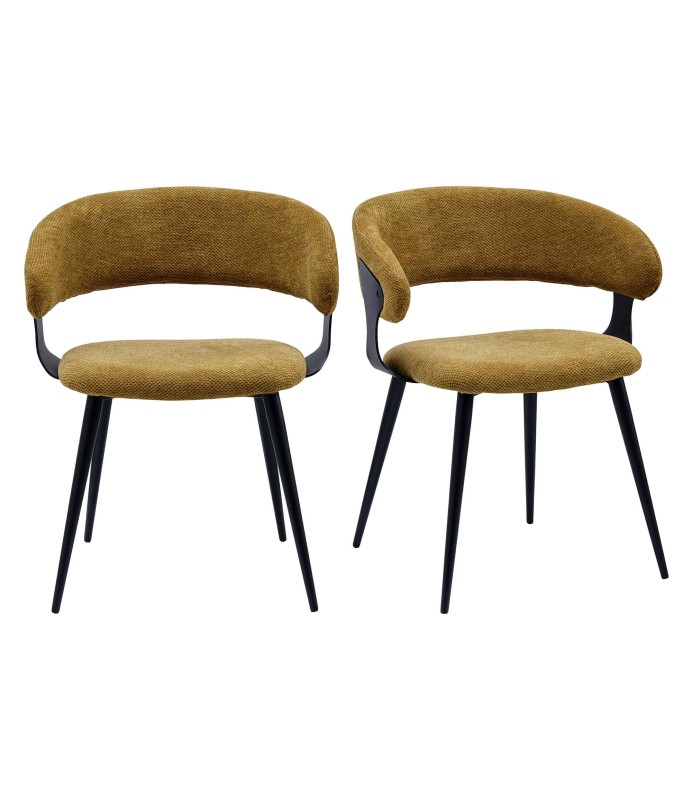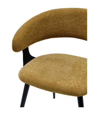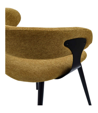 NINA, Fauteuil de table en tissu Luxury Moutarde et métal noir (x2)