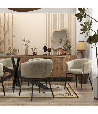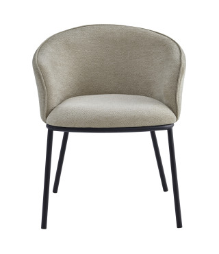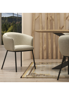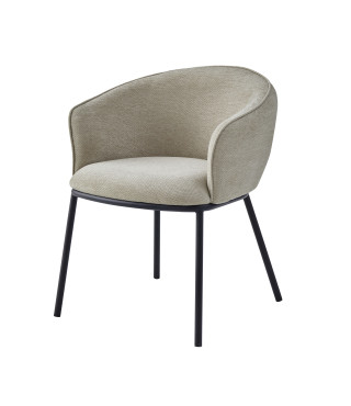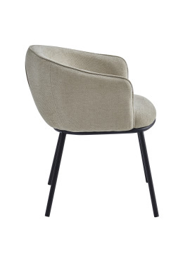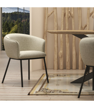 EDVIN, Fauteuil de table en tissu Luxury Grège et métal noir