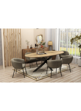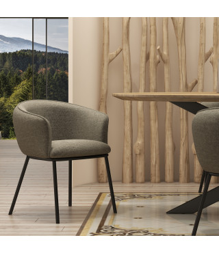 EDVIN, Fauteuil de table en tissu Luxury Taupe et métal noir