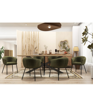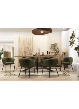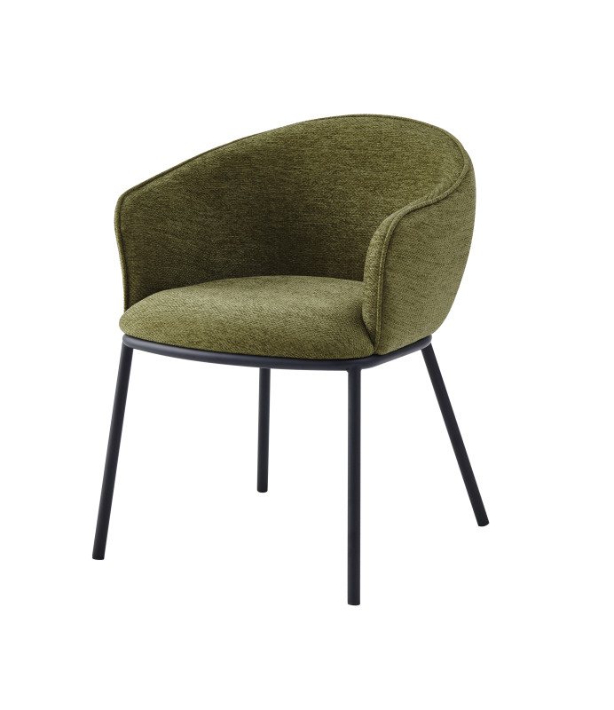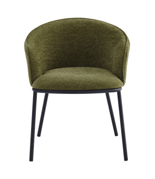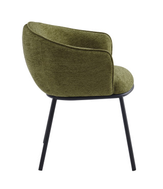 EDVIN, Fauteuil de table en tissu Luxury Kaki et métal noir