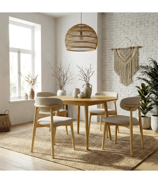IRES, Chaise en Frêne massif et tissu Glory Grège (x2)