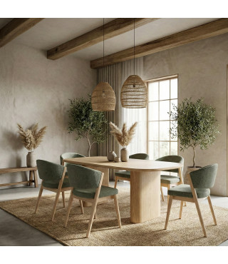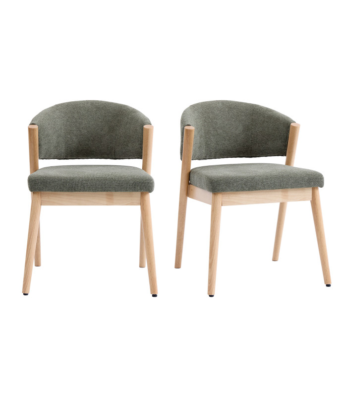 ALBI, Chaise en bois naturel et tissu Trendy Sauge (x2)