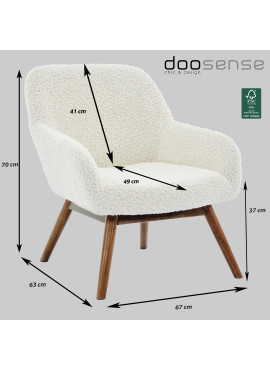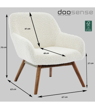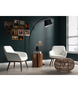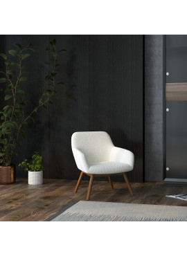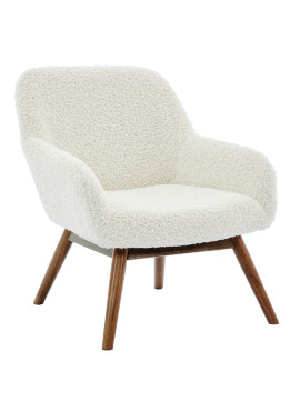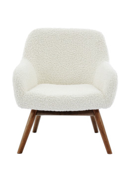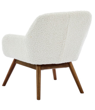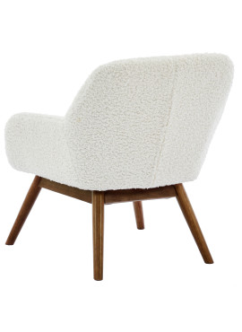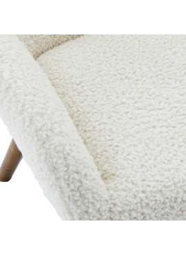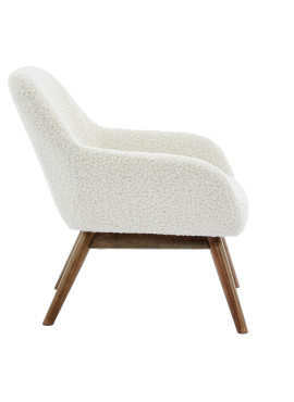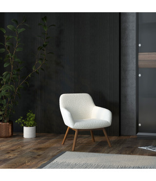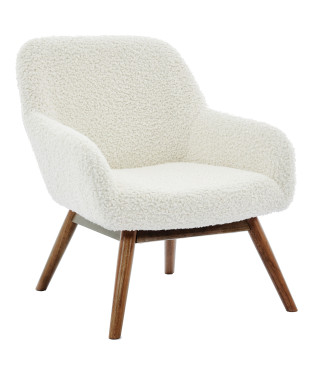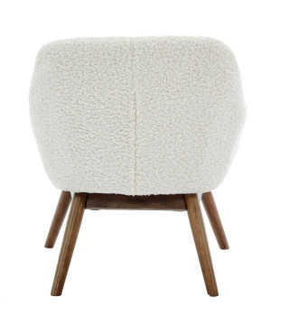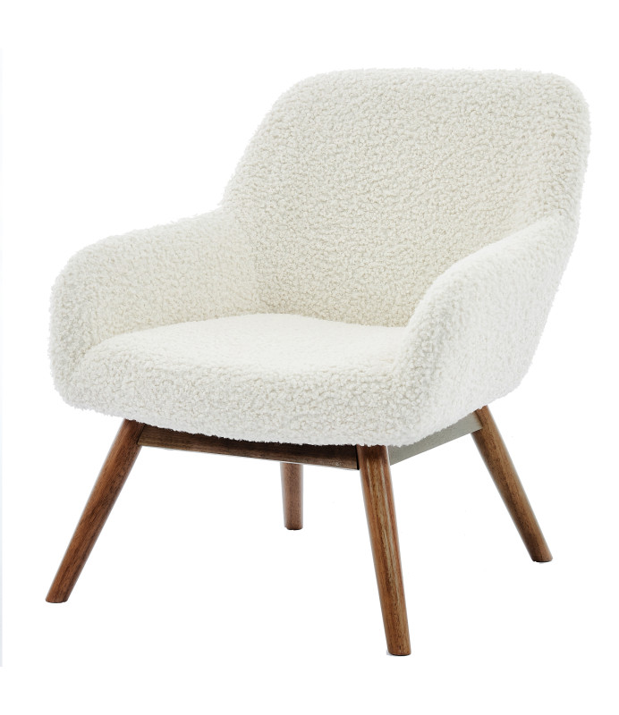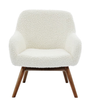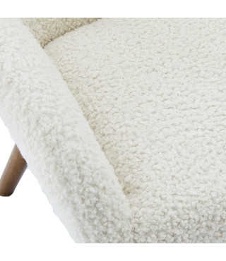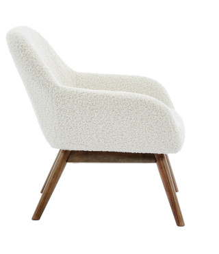 MALT, Fauteuil en tissu bouclette Ecru et bois noyer