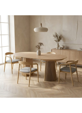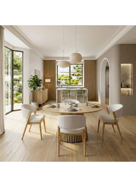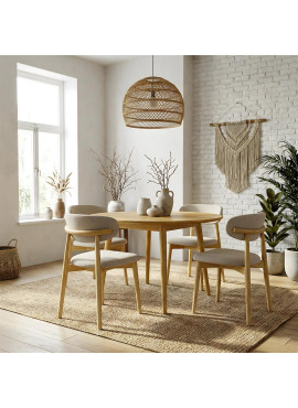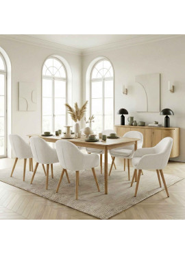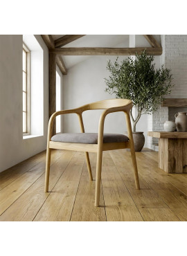 ALBI-Chaise en bois naturel et tissu Trendy Grège (x2)