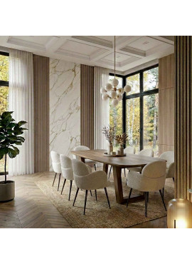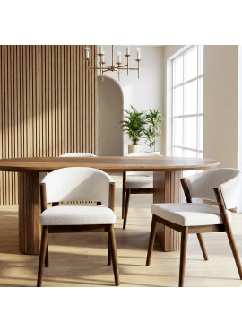 ALBI, Chaise bois patiné noyer et tissu Trendy Grège (x2)