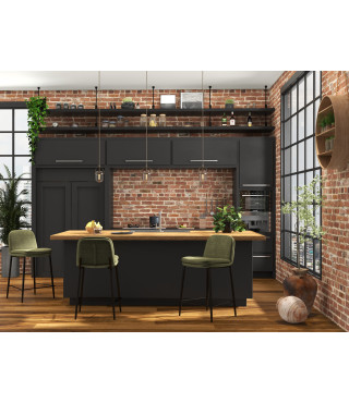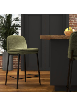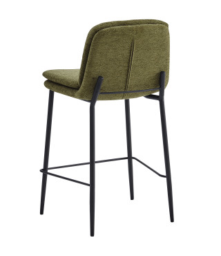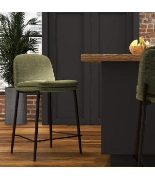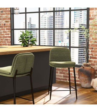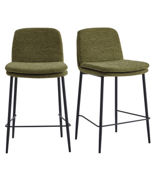 AMIR, Chaise de bar en tissu Luxury Kaki et métal noir (x2)