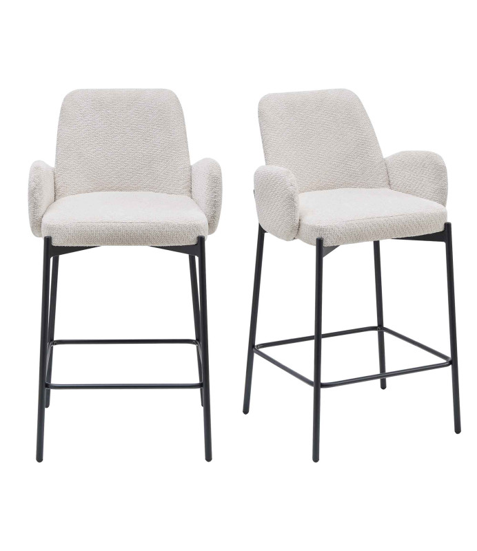ALEXIS-Fauteuil de bar en tissu Ikon Coloris Lin et métal noir (x2)