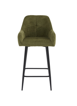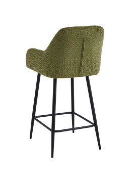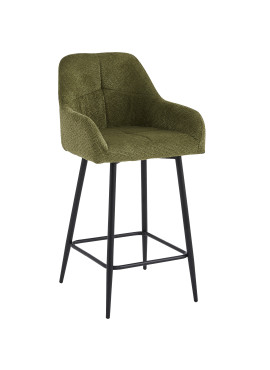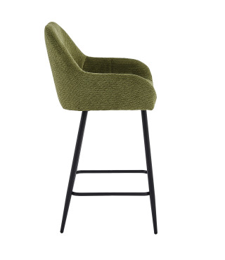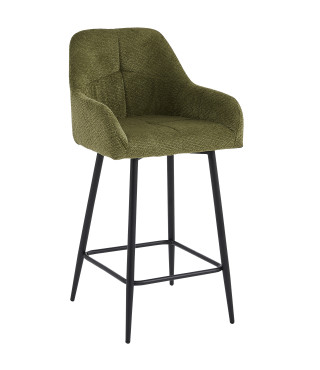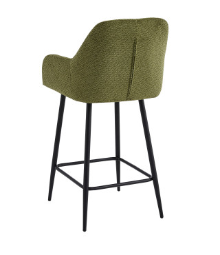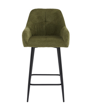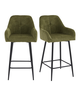 LEO, Chaise de bar en tissu Ikon Olive et métal noir (x2)